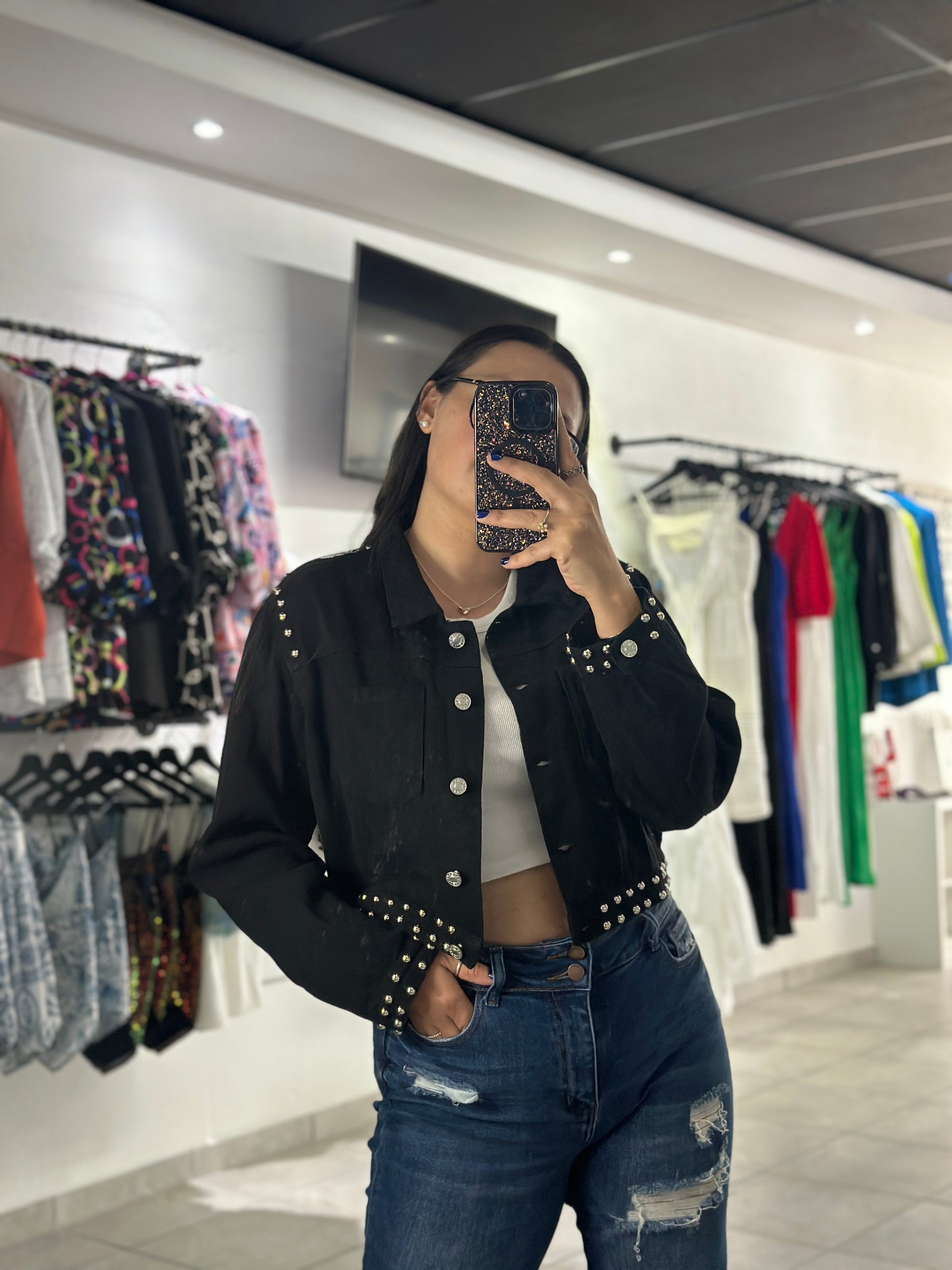 Long Sleeve Twill Jacket with Studded Detail